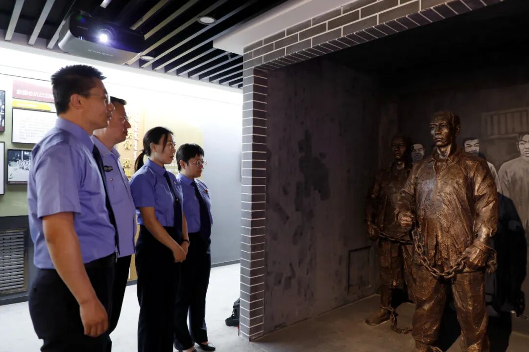 铮铮铁骨,碧血丹心。在讲解员深情的讲解中,大家怀着无比崇敬的心情,深入了解了绥蒙抗日救国会的历史背景。一张张珍贵的照片,铭记了绥蒙英雄的丰功伟绩;一件件历史文物,展现了绥蒙英雄的爱国情怀。这些不被人熟知的英雄,他们面对敌人惨绝人寰的刑讯逼供,宁死不屈、视死如归,用鲜血和生命谱写了震撼山河的悲壮史诗。特别是讲解员哽咽地朗诵刘洪雄烈士咬破手指在监狱墙壁上用鲜血写下明代爱国将领于谦所作的《石灰吟》,大家深受触动,真切感受到理想信念的力量。