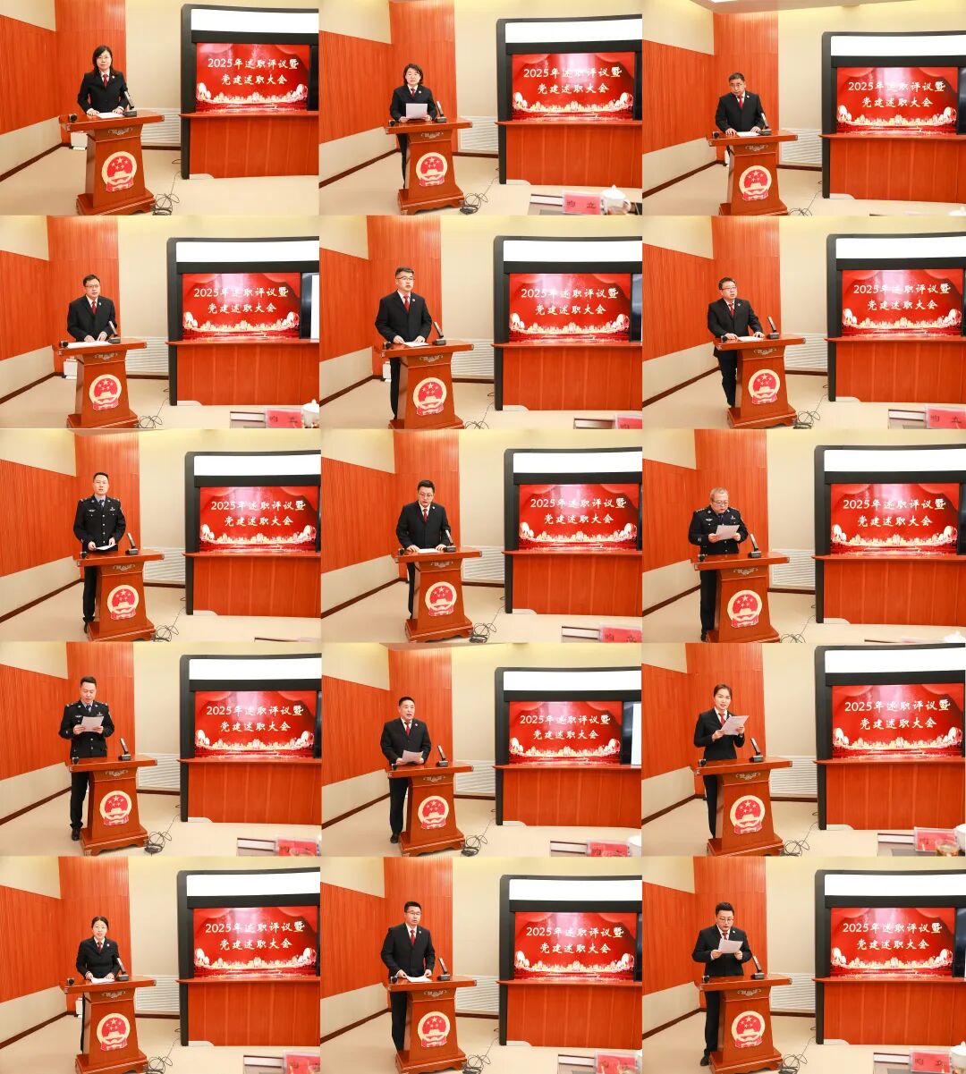 会上,各内设机构、派驻检察室主任依次登台“亮绩晒责”,结合部门工作进行述职述廉。同时担任党支部书记的同志一同对一年来抓党建工作的情况进行述职报告。王传红对各部门、派驻检察室负责人的述职述廉和党建工作进行点评。